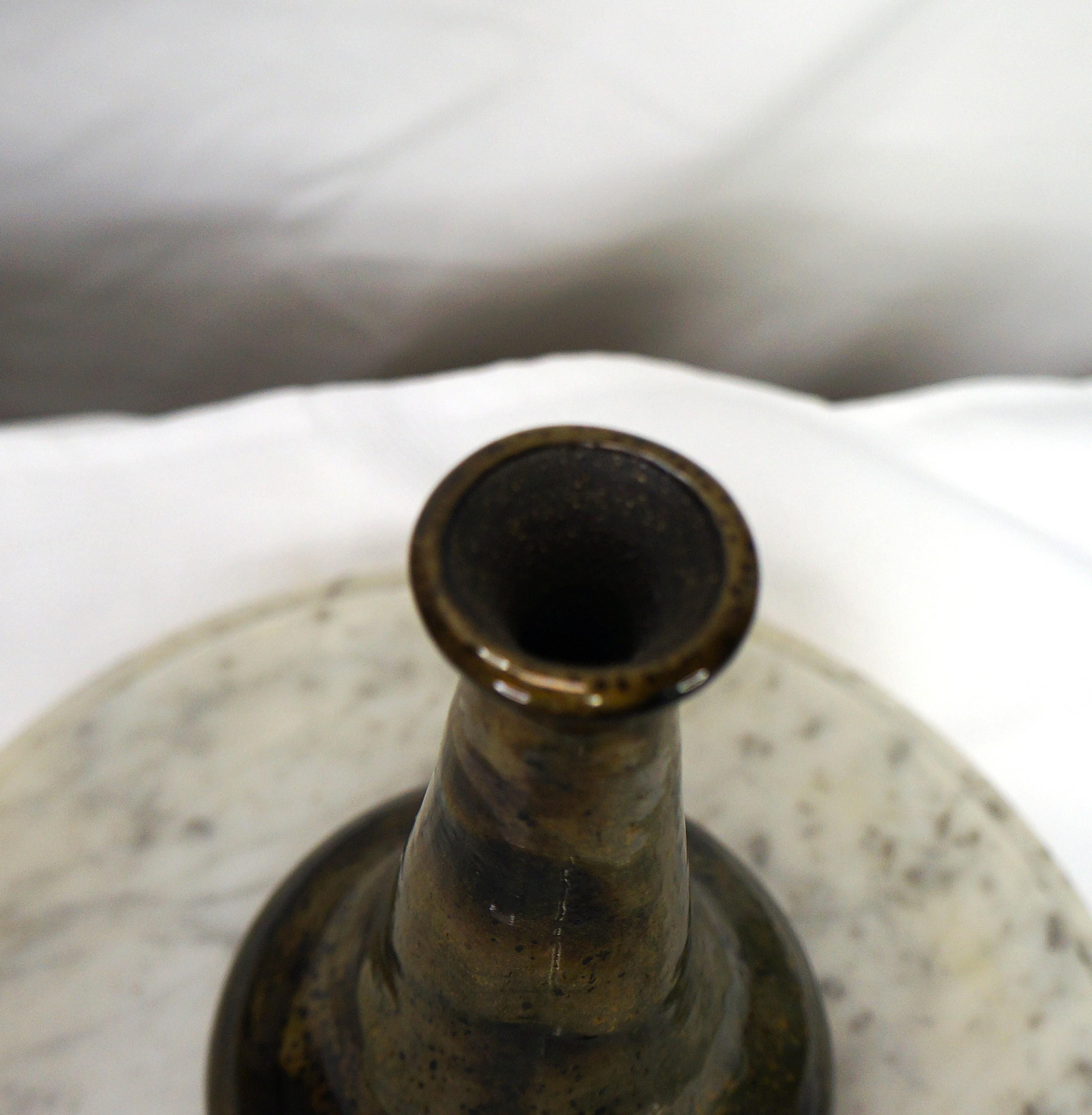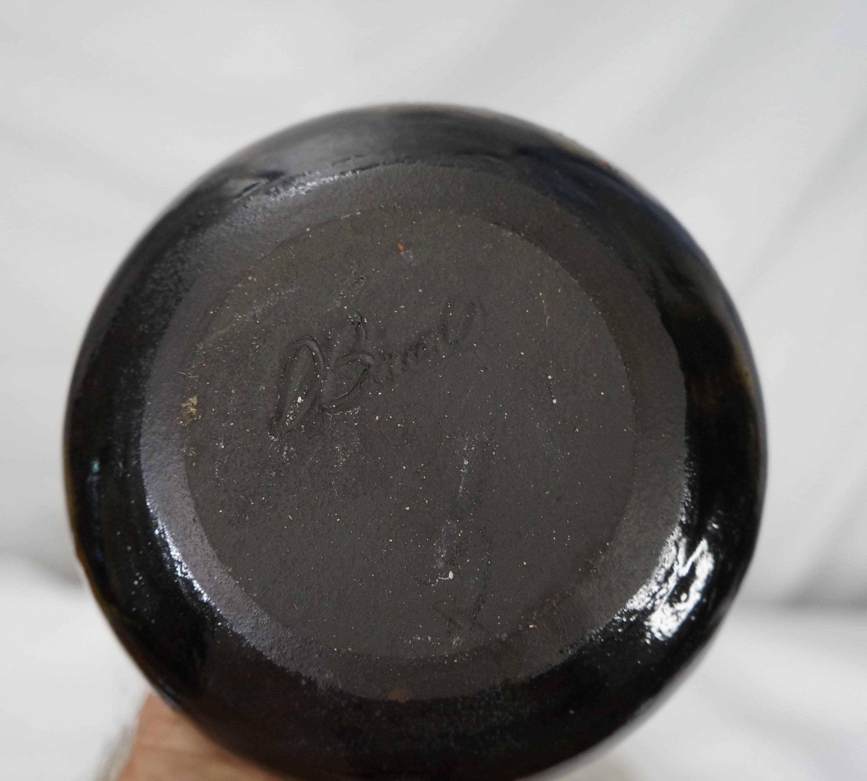 D Barnard pottery, Daniel Barnard vase, studio pottery vase, American stoneware, handmade ceramic, mid century pottery, bottle vase, earth tone glaze, reduction fired, rustic decor, modernist pottery, art pottery 1970s