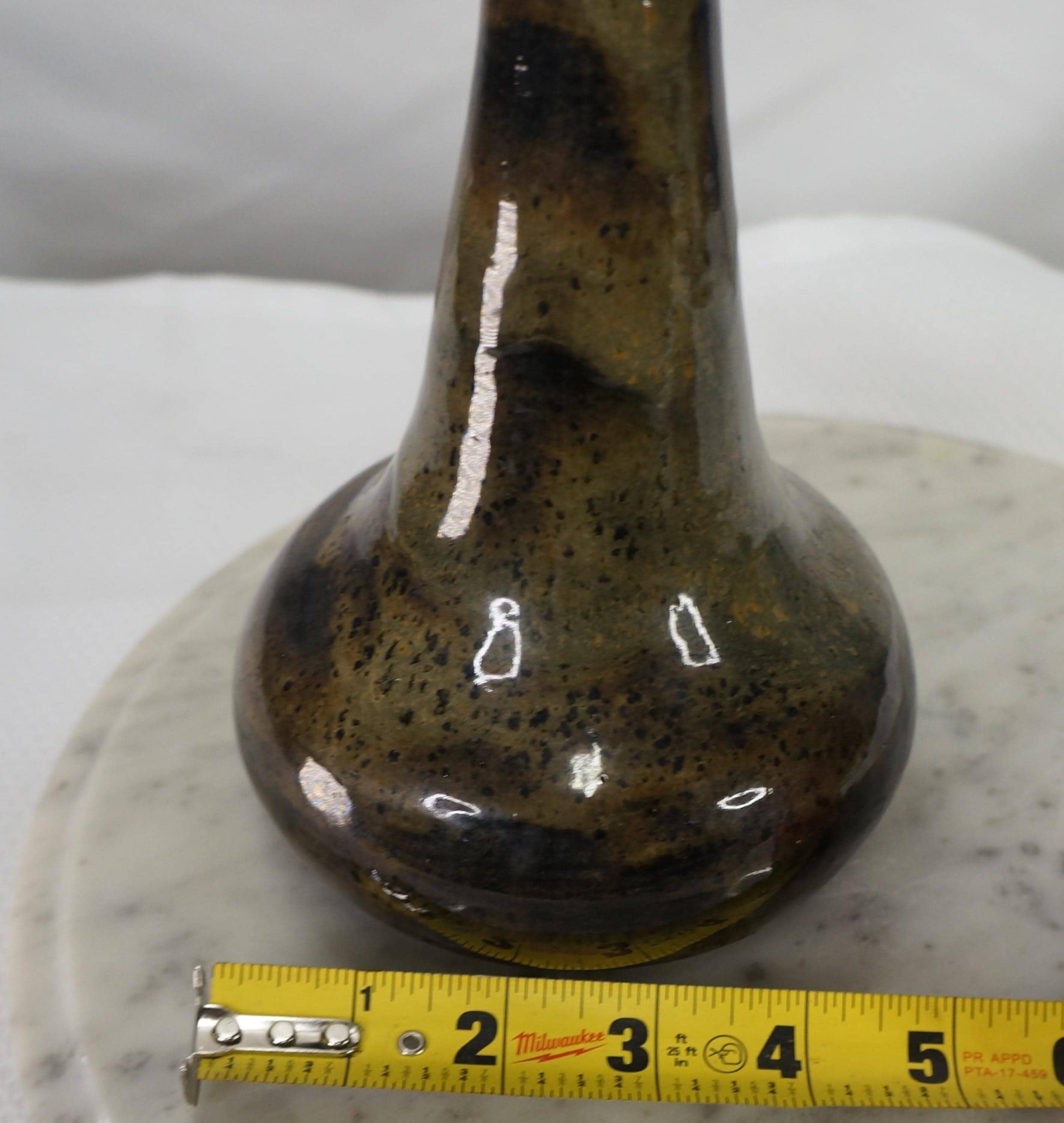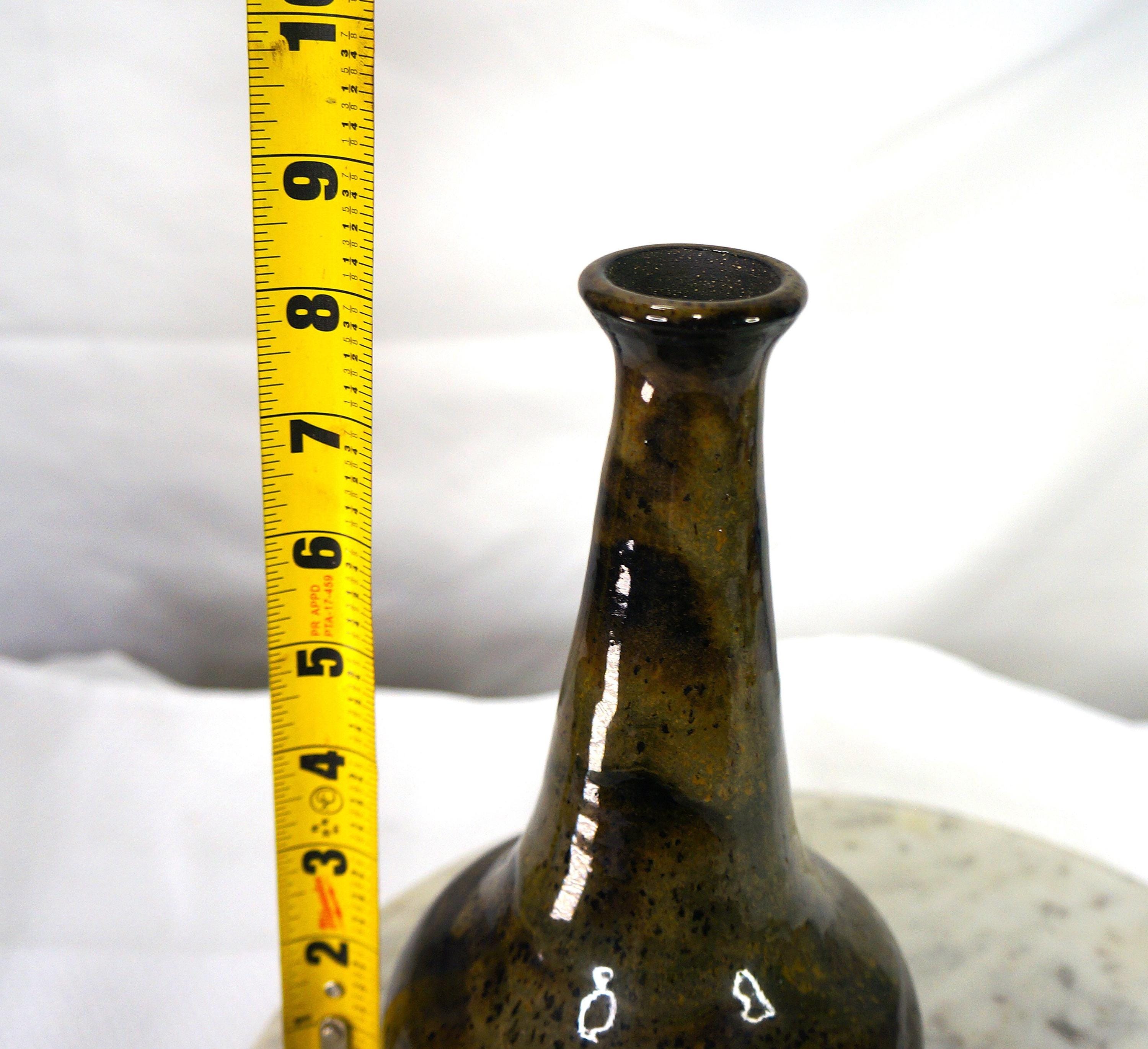 D Barnard Studio Pottery Vase 8.5 Inch Handmade Bottle Form Earth Tone Stoneware Glazed Signed Mid Century Modern