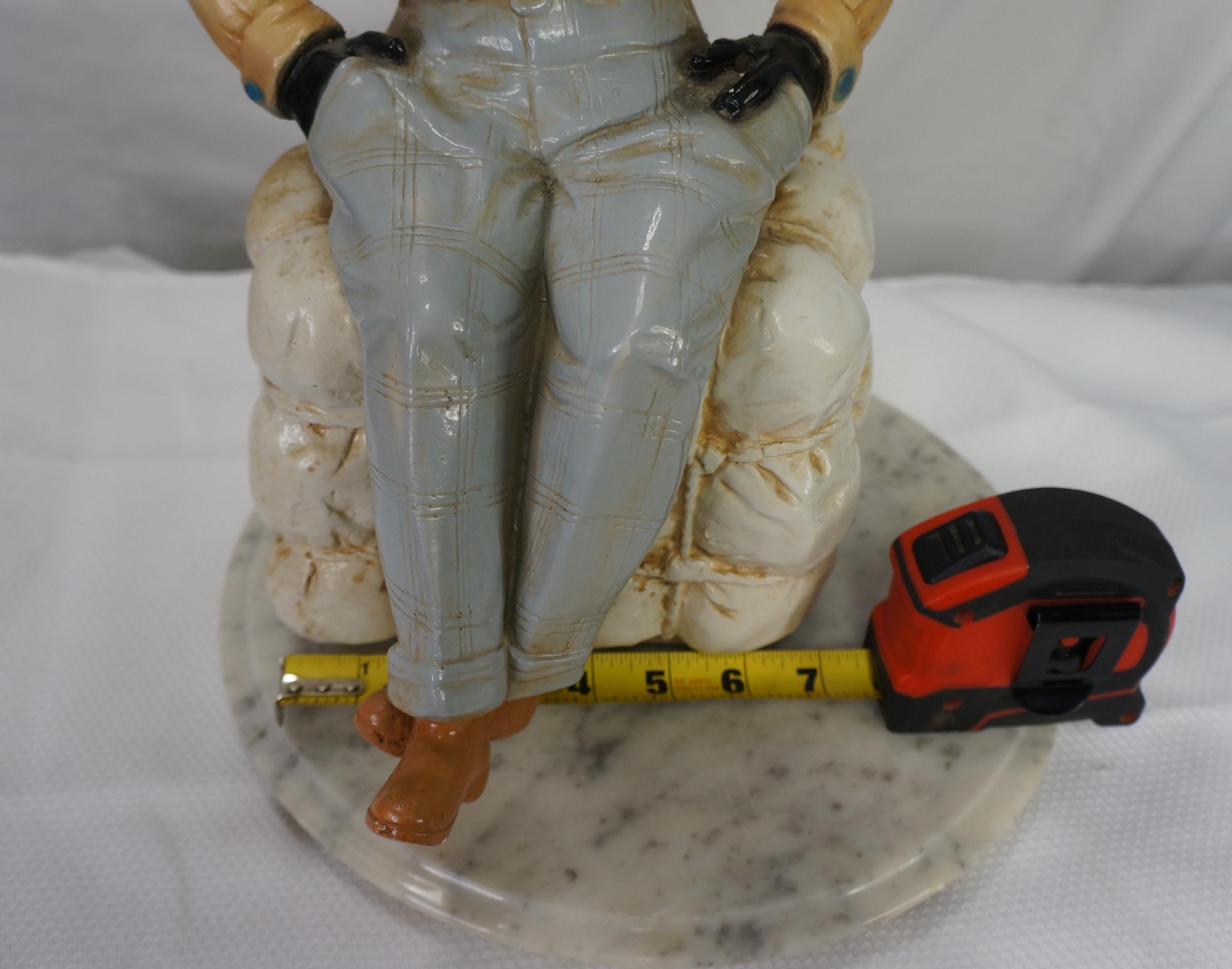 Vintage Black Americana Colonial Art Chalkware Figure 1940s Dandy Caricature Seated on Cotton Bales Large 17 x 7 inch Historical Artifact